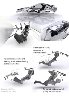 Unfit? Poor? Seclusionist? Goody green shoes? If so, I have something here that might pique your interest. Introducing the GYM concept car; a car that manages to tone you up, burn calories in private, save you money and protect the planet all in one neat little package.