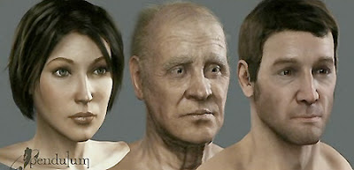 My question is, how come the old man looks scarily realistic and the girl, while pretty, looks fake? She seems too polished, even by make-up ad standards. While this is a great breakthrough in facial expression rendering, clearly some work still needs to be done.