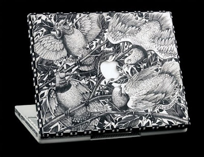There’s no info on the tools he used which I am very curious about seeing as the MacBook’s cover is plastic. As anyone who’s used an engraver before will testify, they have a tendency to go straight through plastic, which would mean…through the display. When you’re not drilling holes, you’re chewing and burning which results in a ghastly mess.