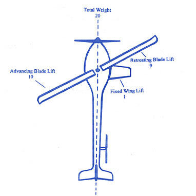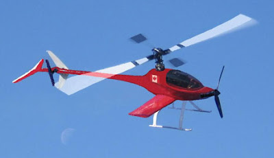 The Challis Heliplane is capable of vertical takeoffs and landings much like a traditional helicopter, but when engaged in forward flight, the front propeller mostly takes over, providing 80 percent of the thrust. In this mode, the rotors continue to provide some lift, aided by the single wing on the body and on the tail. This design has an advantage over Tiltrotor type craft in that if engine failure occurred, the craft could make a safe emergency landing in much the same manner as a traditional helicopter.