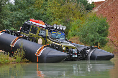 In what seems like a Ewan and Charley adventure, an international team will set out next year on a world first expedition. Their aim: An intercontinental drive from Paris to New York. The 43,000km (26,718 mile) journey will be made in three modified Jeeps with large floats and special swimming tires (below) and aims to be entirely CO2 neutral.