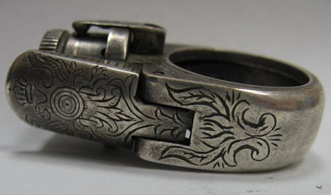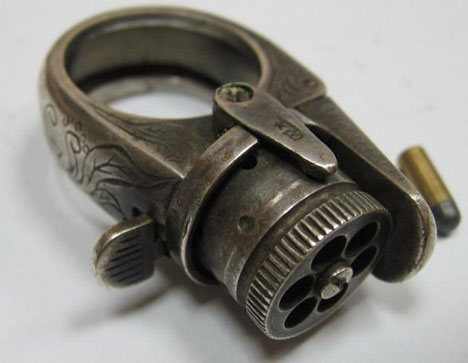 This ring gun may have been originally designed as a form of self-defence for women in early times, but what about modern times? There may be occasions and situations when shooting somebody seems a little extreme. I suggest a mace squirter. Just like a water gun, only more peppery.