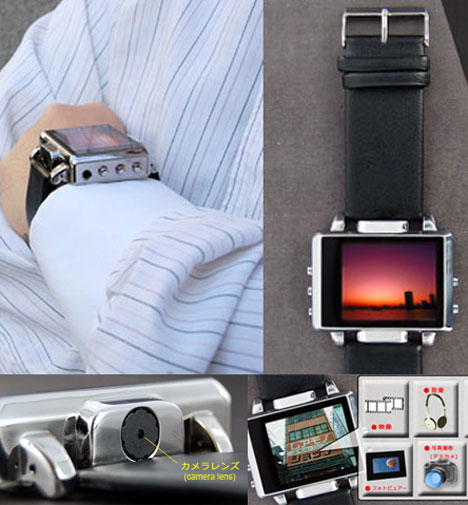 The MP4’s camera rests on the top edge, so positioning it for recording may result in more obvious stances than a dial-mounted cam – but you can’t have everything, I guess. It includes a mini-USB port on its side for transferring data, supports AVI, MP3, WMA and JPG file formats and is currently out of stock – but will be available again in mid-January for a not-too-unreasonable ¥14,800 ($164) over at Thanko Japan.
