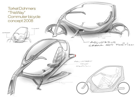 ThisWay was designed by Torkel Dohmar and came top spot in the Commuter Bike For The Masses design competition. The style was influenced heavily by car and motorcycle design in an attempt to make the transition to bicycles easier for those accustomed to motored transportation.