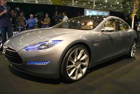 Tesla Motors yesterday officially unveiled a new prototype electric sedan that the company hopes will hit the market in 2011, priced at less than half of the base cost of the company’s troubled Tesla Roadster.